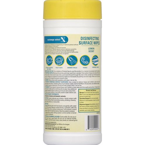 Keep your home clean and fresh with Exchange Select Disinfectant Wipes. These lemon-scented wipes disinfect and kill 99.9% of bacteria and kill cold and flu virus. Wipe down the doorknobs, writing utensils, remote controls and other areas that are frequently touched.