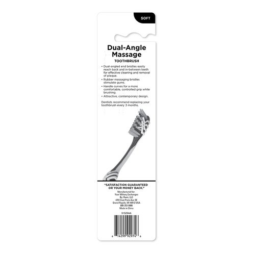 Exchange Select Dual-Angle Massage Toothbrush is designed with dual-angled end bristles that easily reach your back teeth and in-between teeth for effective cleaning and removal of plaque. The toothbrush features rubber massaging bristles to stimulate your gums as well as a curved handle for a more comfortable, controlled grip while brushing