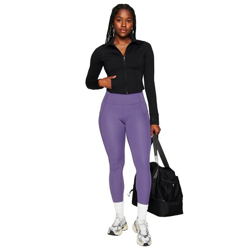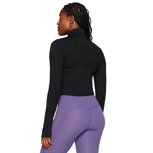 LEVEL UP. Don't miss on the design of the year. With sweat-wicking tech and 4-way stretch, this cropped jacket is essential for your workouts. You'll love the flattering fit, convenient thumbholes, and side pockets. Obviously, add to cart.