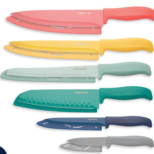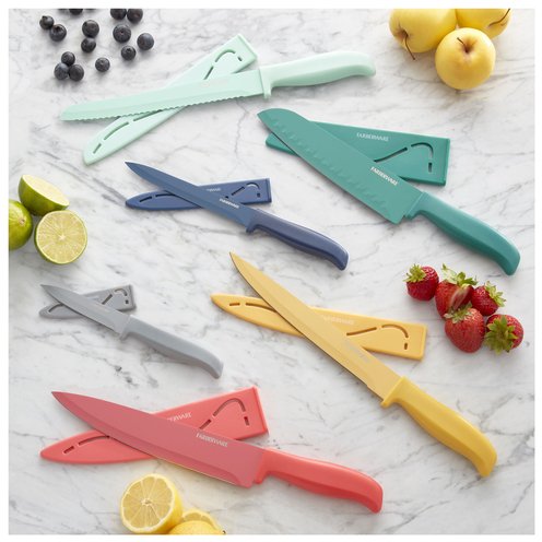 12-piece cutlery set has a stick resistant coating to keep foods from sticking to the blades