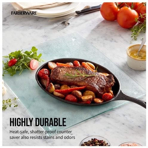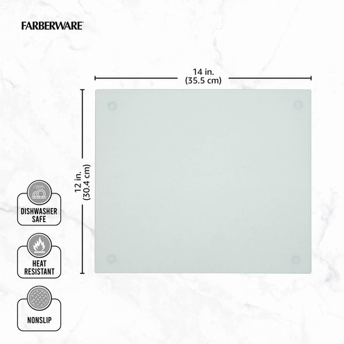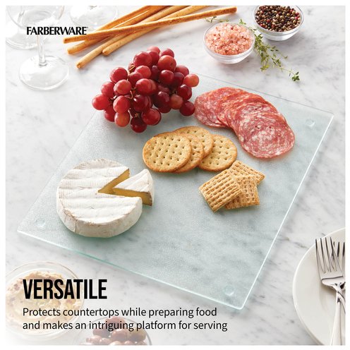 This Farberware Glass Utility Board provides a durable, break-resistant tempered glass surface for all your cutting tasks. Board is non-absorbent, odor and stain resistant, and easy to clean. Measures 12x14 inches. Hand-wash with warm water and a mild detergent; rinse and dry immediately.