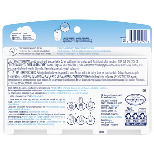 Includes (3) scented oil refills for Febreze Fade Defy PLUG Air Freshener
