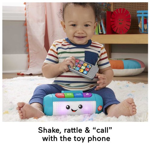 Get the learning party popping with the Laugh & Learn® Light Up Learning Speaker musical baby toy from Fisher-Price®. This pretend speaker electronic toy features 4 buttons for your baby to press to activate multi-color lights, songs and phrases that introduce the alphabet, counting, shapes and more. With a removable toy phone to shake, rattle, and “dock” on the speaker, this interactive learning toy helps keep babies and toddlers engaged in early role-play as they jam out.