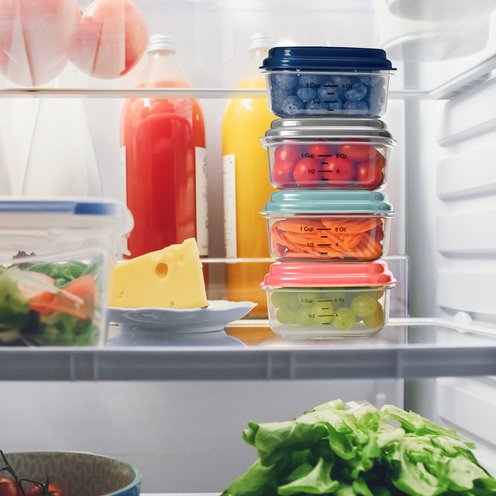 - Just fill, stack and snap together. You'll be able to take these containers anywhere: the gym, the office or school! These containers are entirely unique as the set comes with two removable, reusable ice packs that snap into the container lids to help keep the contents fresh until lunchtime. The handy measurement lines make packing perfect portions easy! Portion control has never been easier!