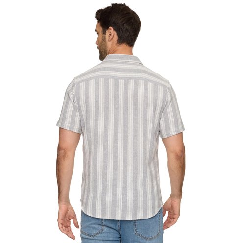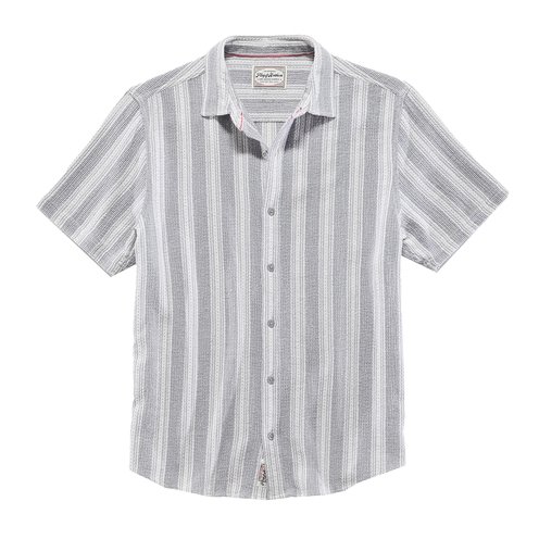 Casual touches like the button-down front, textured geo-stripe print, and perfect untucked length give the classic silhouette wear-anywhere versatility. Pair it with shorts, chinos, or jeans - the outfit possibilities are endless. Contrast fabric inside collar stand, back yoke, front placket, and sleeve cuffs.