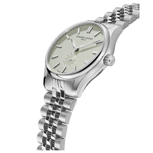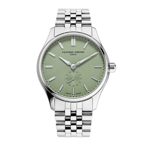 This Classics Automatic is modern, dynamic, understated and contemporary. Featuring the FC-530 Automatic movement, this watch boasts a brushed and polished 2-part stainless steel 39mm case, a striking sage green dial with applied silver indexes filled with white luminous treatment, and small seconds reader at 6 o'clock. Finishing the look, the watch is delivered on a brushed and polished 7-link bracelet.