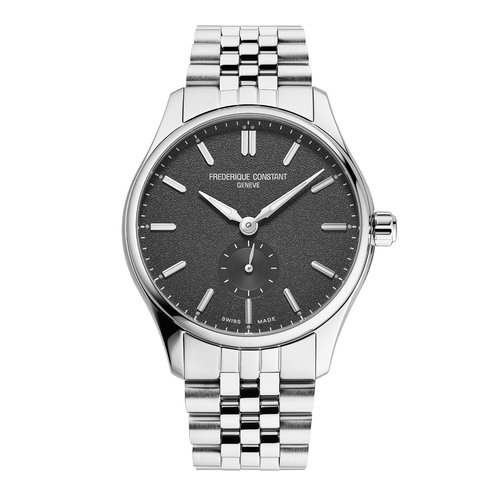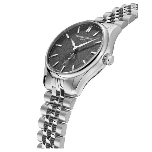 This Classics Automatic is modern, dynamic, understated and contemporary. Featuring the FC-530 Automatic movement, this watch boasts a brushed and polished 2-part stainless steel 39mm case, a dramatic dark black dial with applied silver indexes filled with white luminous treatment, and small seconds reader at 6 o'clock. Finishing the look, the watch is delivered on a brushed and polished 7-link bracelet.