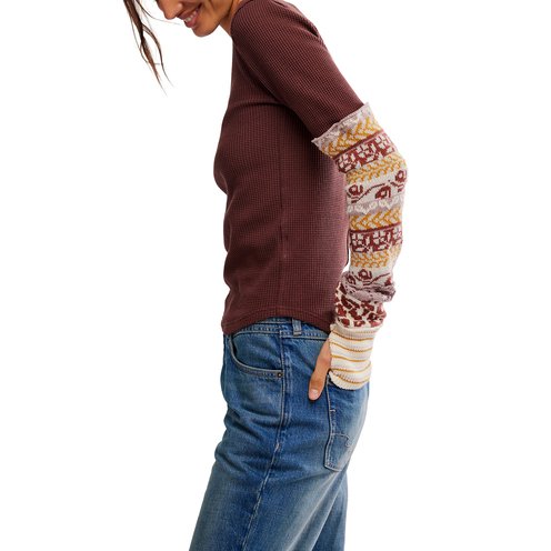 Cuffing season is finally here. This top from our We The Free collection features a relaxed fit and long-sleeve style with exaggerated printed cuffs and thumbhole detailing. Why We Love It: This one-of-a-kind top adds something eye-catching to every outfit.