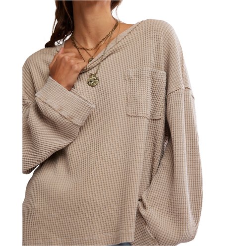 So essential from our We The Free collection, this waffle knit top features soft cotton fabrication, a slouchy, relaxed silhouette, and exaggerated drop shoulders for a go-to comfy staple.