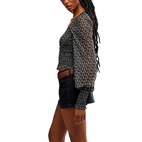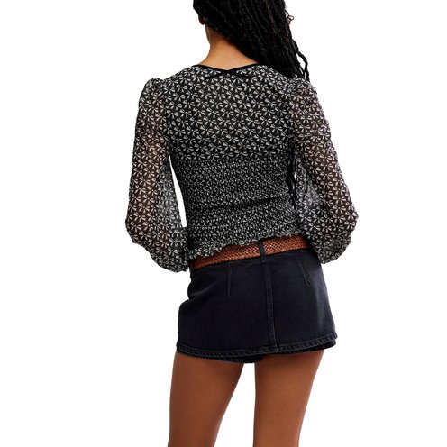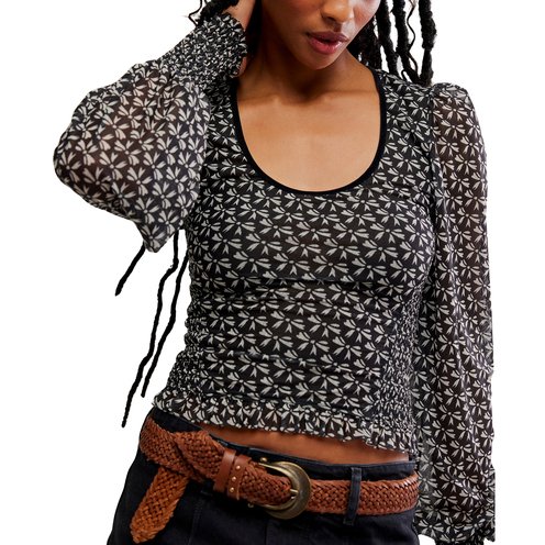 Totally femme, and so flowy, this long-sleeve top features semi-sheer fabrication, billowy balloon sleeves, and a fully lined, cropped fit bodice.