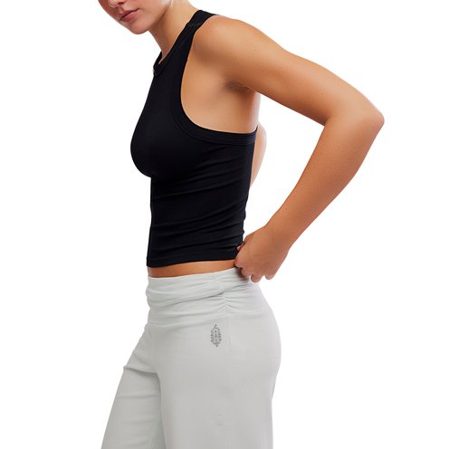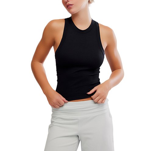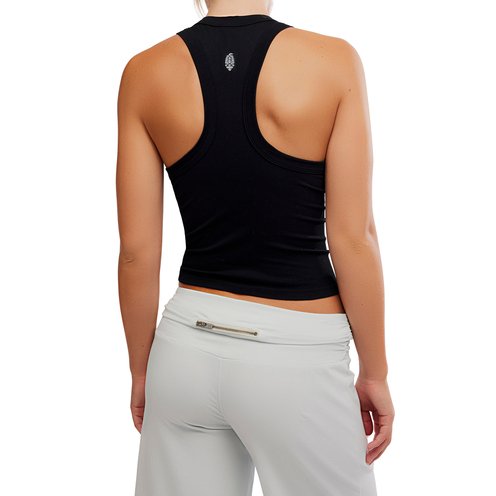 Run-ready in this ribbed tank, crafted from a stretchy fabrication and topped with a contrast trim. Racerback is finished with FP Movement buti logo.