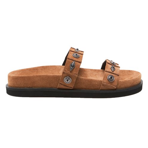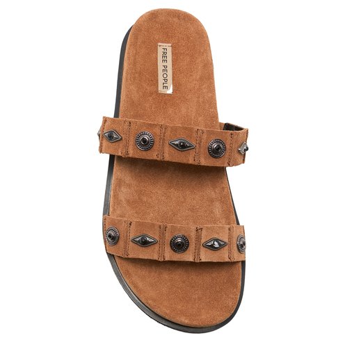 Embellish your footwear collection with these detailed, comfortable sandals from FP Collection, featuring double ridged straps, embellished buttons, and a comfortable, sunken footbed for everyday wear.