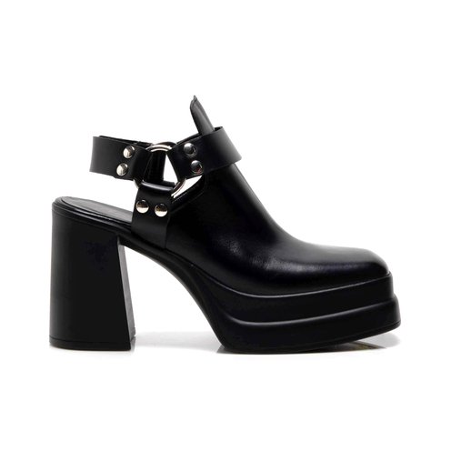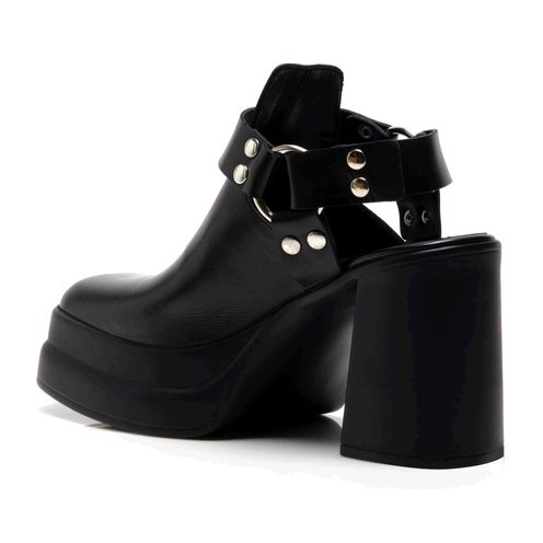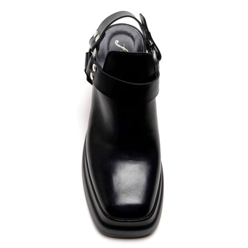 World collide with this statement-making hybrid pair, featured in a platform bootie silhouette with slingback, harness-style strap for a design that exudes effortless edge.
