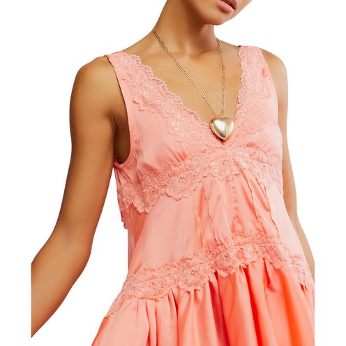 - Features: Silky fabrication, babydoll style, V-neckline, tiered design, lace trim