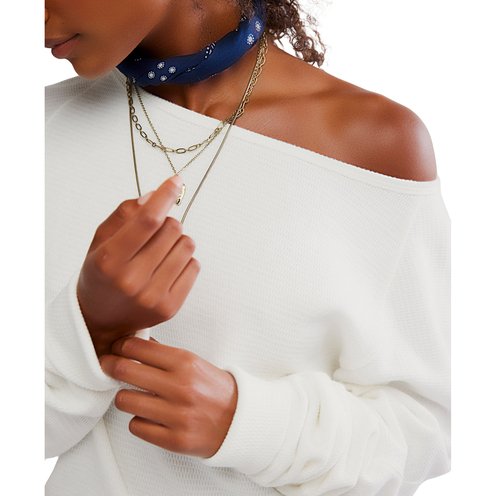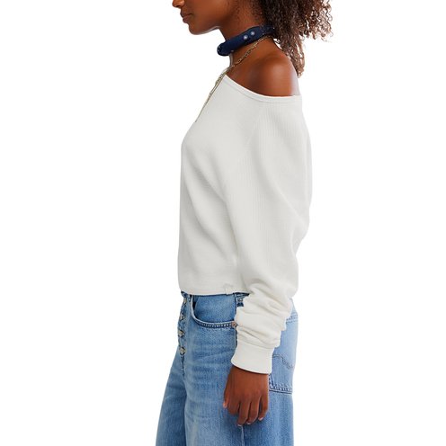 A cozy base for endless outfitting, this long sleeve from We The Free is featured in a thermal fabrication with a flattering boat neckline and slouchy dolman sleeves.