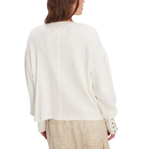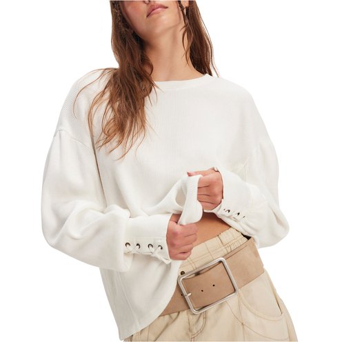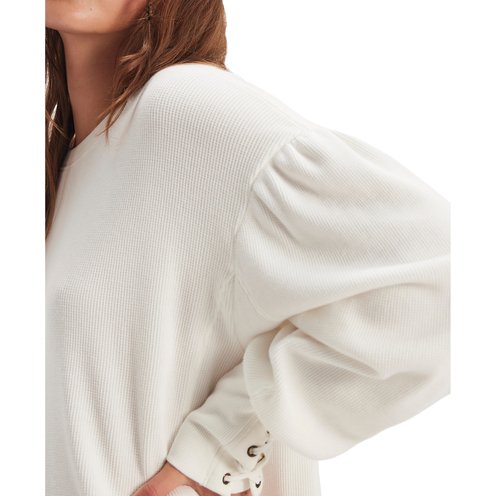 Laced up cuffs and and gathered sleeves elevate a staple top made from cozy cotton.