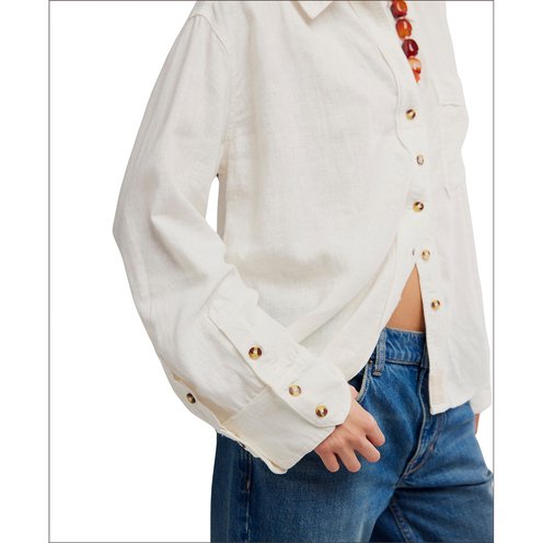 Breezy, billowy, beautiful, this airy top from our We The Free collection features a lightweight linen-blend fabrication and a relaxed-fit button-down silhouette, making it the perfect effortless essential.