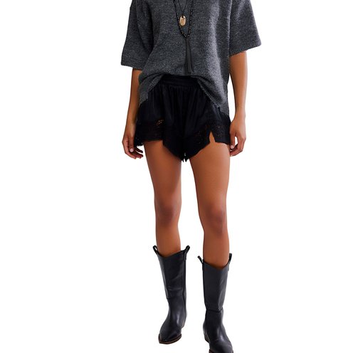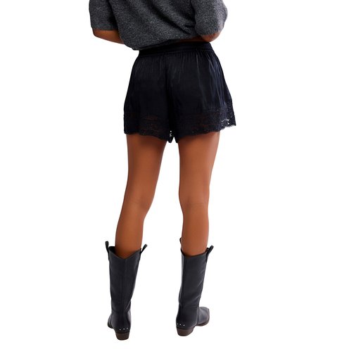 The perfect pull-on pair to take you from lounging at home to styling with a more put-together look, these effortless shorts are featured in a high-rise, flowy fit with lace trim at bottom for the perfect finishing touch.