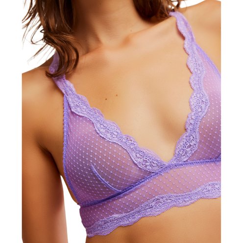 Made for everyday wear, this essential bralette is featured in a sheer mesh fabrication and classic pull-on style with delicate lace trim and racerback detailing.