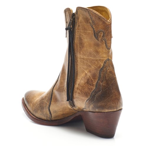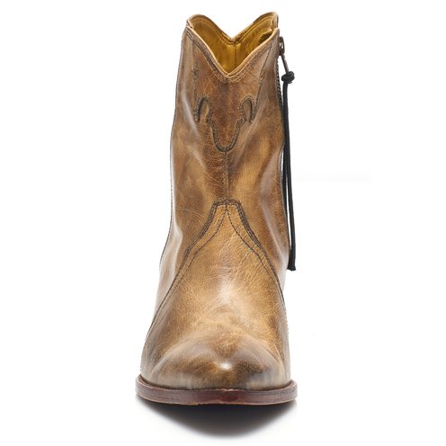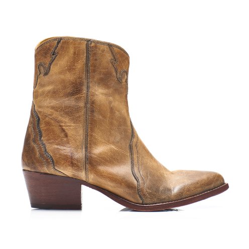 Stand out in these patent leather ankle boots in a western-inspired silhouette featuring a stacked heel and pointed toe.
