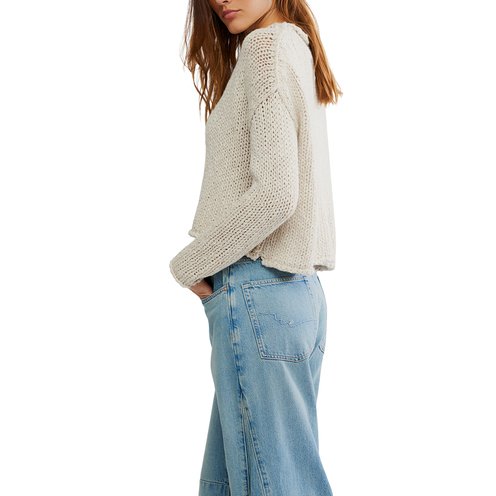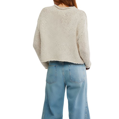 So light and perfect for any-season layering, this staple sweater is featured in an airy cotton knit with a rolled neckline and dropped shoulders for that laidback look.