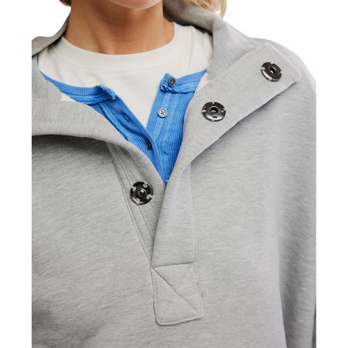 So cozy and essential, this wear-everywhere pullover features a funnel neck design with quarter-button detail and ribbed trimming for added dimension.
