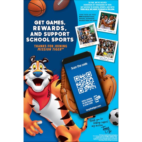 Frosted flakes of corn. Per 1 Cup Serving: 130 calories; 0 g sat fat (0%DV); 190 mg sodium (8%DV); 12 total sugars. Contains a bioengineered food ingredient. They�re gr-r-reat! Snack time anytime. Wake up with a bowl. Delicious by the spoonful. kellogs.com. Open camera or qr reader & scan code. Certified 100% recycled paperboard.