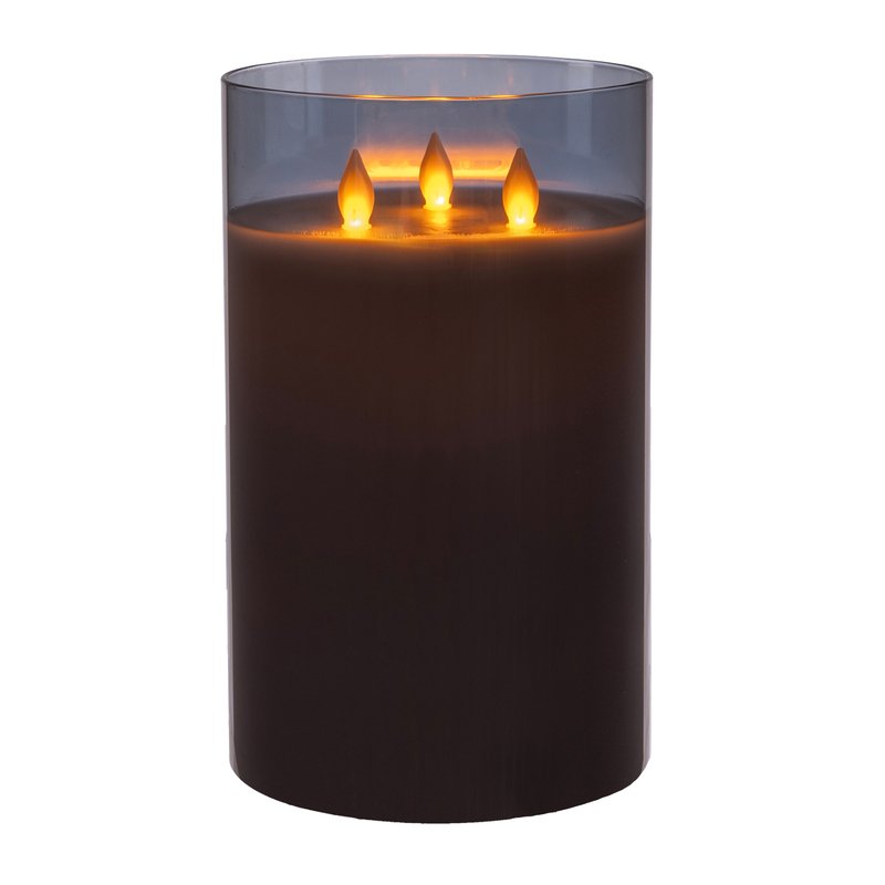 Moody and modern, this Flameless LED Candle in Smoked Grey Glass sets the tone with its trio of warm white flames. Housed in sleek smoked glass, this three-wick design brings effortless ambiance with a contemporary edge.