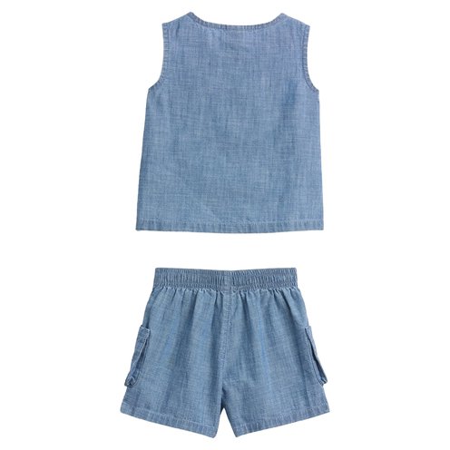 Soft indigo cotton denim Henley tank top and pull-on shorts outfit set