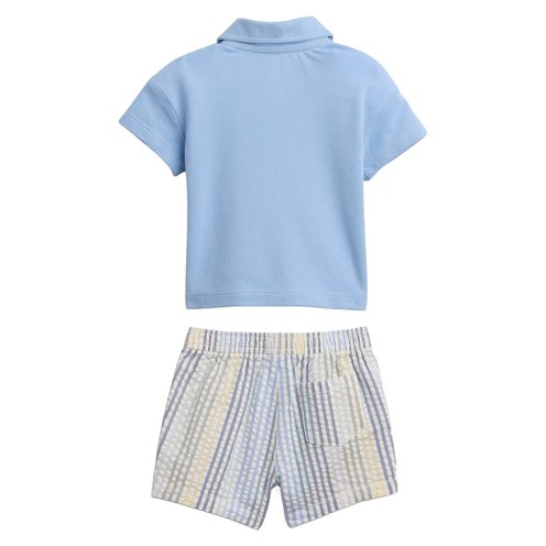 Soft stretch pique cotton polo shirt and seersucker pull-on shorts outfit set