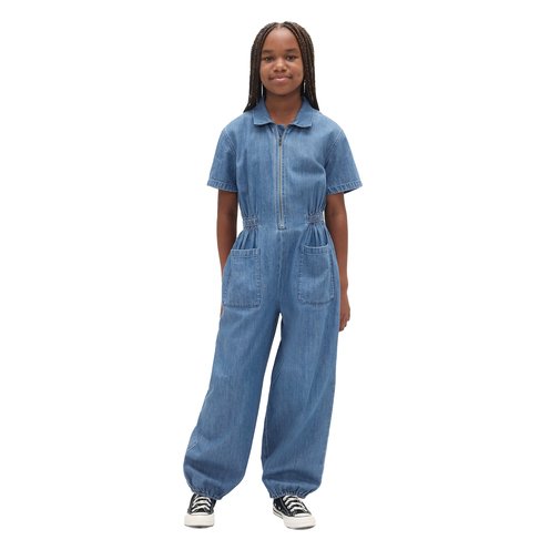 Responsibly Made: This denim jumpsuit is part of our water-saving Washwell program. Compared with conventional wash methods, Washwell uses at least 20% less water