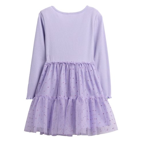 - Soft knit-to-woven dress with a cotton top and poplin-lined mesh tulle skirt