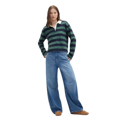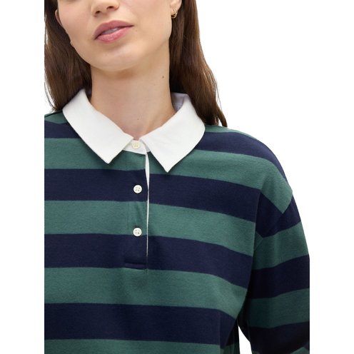 Softness Meets Style In This Oversized Rugby Polo With Allover Stripes For Your Wardrobe Refresh!