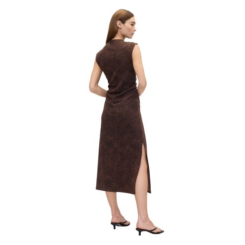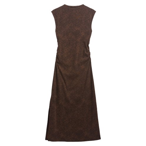 Revamp Your Wardrobe With This Stylish V-Ruched High Neck Maxi Dress Featuring A Soft Ribbed Knit, Perfect For Any Occasion.