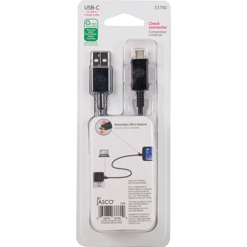 Experience the future of charging with the GE-branded USB-C to USB-A 6.5ft. Charge Cable. Connect, sync and charge the latest USB-C products to any USB-A port – PC and Mac compatible. The universal design of the male USB-A plug is perfect for laptops, AC power adapters, car chargers and more. With its universal and future-ready design, USB-C is quickly becoming the industry standard for charging and powering laptops, tablets, smartphones and more.
