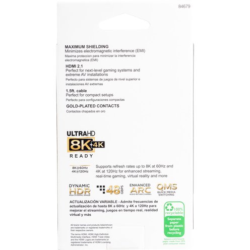 - Future-proof – HDMI 2.1; supports data transfer up to 48Gbps, 8K@60Hz fps, 4K@120Hz fps, HDCP 2.2 (with compatible source), eArc, Dolby Atmos and HD Dolby 7.1 audio; perfect for next-level gaming systems and extreme AV installations