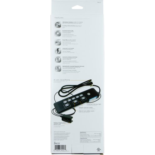 - Multi-Outlet – 8 protected outlets (including 3 adapter-spaced outlets) and a dual-port USB charging tether with 2.4A/12W of combined charging power for increased versatility.