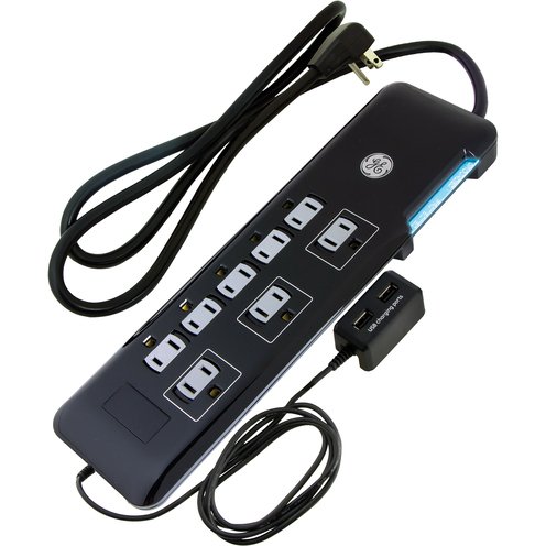 Protect your electronics and charge your portable devices at the same time with the GE-branded UltraPro™ Surge Protector with USB Charging Dock. This multifunctional surge protector is loaded with safety and usage features that make it a must-have for any powering station. Featuring five grounded outlets, three adapter-spaced grounded outlets and two USB ports on a 4ft. charging dock, this surge protector has plenty of space for all of your electronics.