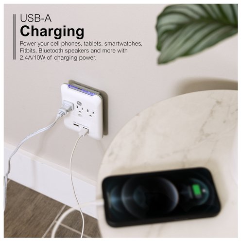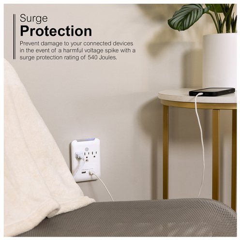 When your power supply comes up short, enhance your options with the GE-branded UltraPro 3-Outlet, 2-USB Surge Protector. Featuring three grounded outlets with 540 Joules of surge protection and two USB ports delivering 2.4 Amps, the plug-in tap transforms your regular outlet into a safe, multipurpose powering station.