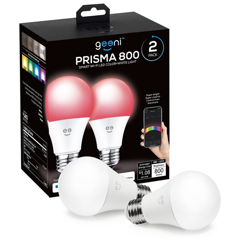 Geeni Prisma 800 smart dimmable multicolor LED light bulbs makes lighting control easier than ever. Group lights for ease control or set schedules to match your daily routine, with the Geeni app you can do it all.