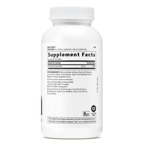 Zinc is an essential mineral involved in most of your body’s metabolic processes, and you need it every day! It isn’t always easy getting enough mineral-rich foods in your diet, especially if you’re on a weight loss journey or cutting meat out of your diet. GNC Zinc can make a big difference! Zinc is key to supporting a healthy immune system, plus it’s required for normal reproductive function and plays a role in how the body utilizes glucose and processes insulin. Zinc is also involved in collagen synthesis. So, do your skin a favor and consider a zinc supplement along with that collagen powder or drink! Every one-tablet serving provides 50mg of zinc. This formula is free of gluten, dairy, wheat and soy to accommodate individuals with sensitivities to common allergens. As a dietary supplement, take one tablet daily.