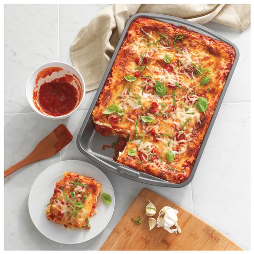 Bring high-quality bakeware to your home kitchen with the GoodCook 10" x 14" Bake & Roast Pan. Designed with home bakers in mind, this nonstick baking pan ensures a perfect bake every time for larger batches of your favorite main and side dishes, from making lasagna and casseroles to roasting chicken and vegetables. Its versatile design is also great for baking cakes, brownies, cinnamon rolls, biscuits, and more. The scratch-resistant nonstick coating provides excellent release, and it is dishwasher safe to make clean up quick and easy. It is also metal spatula safe so you can bake and serve all in one pan. This nonstick baking tin measures 10" x 14" x 2" and is made with heavy duty gauge steel with a gray finish to offer high quality baking for years to come.