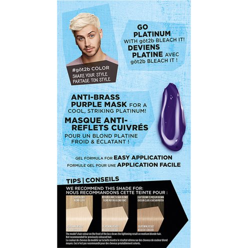 - Go platinum with Got2B bleach it! Anti-brass purple mask for a cool, striking platinum!