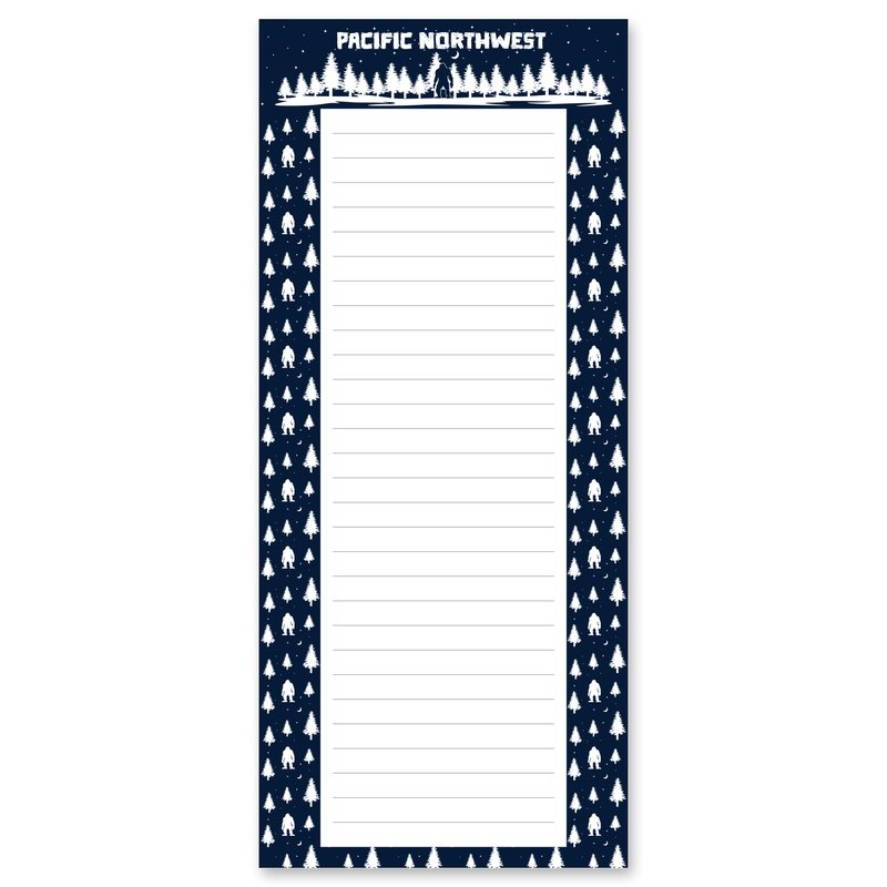 Pacific Northwest Treeline Nightscape with Sasquatch Image Notepad with 50 lined pages per pad and chipboard back.