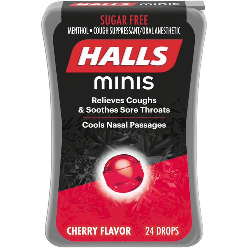 HALLS Minis Cherry Flavor Sugar Free Cough Drops, 24 Drops