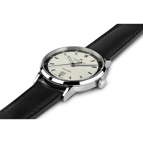With a striking two-tone dial, the Intra-Matic Automatic has a vintage-infused style that will transition from the office to a weekend getaway without missing a beat. Powered by our exclusive H-10 movement featuring the anti-magnetic alloy Nivachron, this standout 40mm timepiece is precise, reliable and full of character.