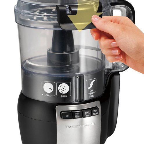 Whether you are cooking for two or prepping a large family meal, the Hamilton Beach® Stack & Snap™ 10 Cup Food Processor takes the guesswork out of food processing with a simple function guide that shows you which blade to use and which button to press. Designed to be uniquely simple – there’s no twisting, turning or locking required when assembling the food processor. Chop, slice, shred, mix and puree just about anything with the powerful 450 Watt motor. You can process soups, sauces, or other liquids without worrying about leaks because the bowl is sealed. The large-capacity bowl holds 10 cups.