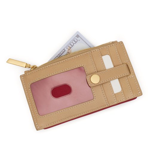 Your schedule is booked. That's why we've created an essential wallet that conquers every calendar entry. Stash credit and transit cards in up to 8 secure slots, and store meter change in one zippered pocket. Plus, enjoy a transparent ID slot when that cute bouncer asks for a peek at your license. Crafted with a pale, tan pebbled leather - a modern refresh of our Toast Tan,