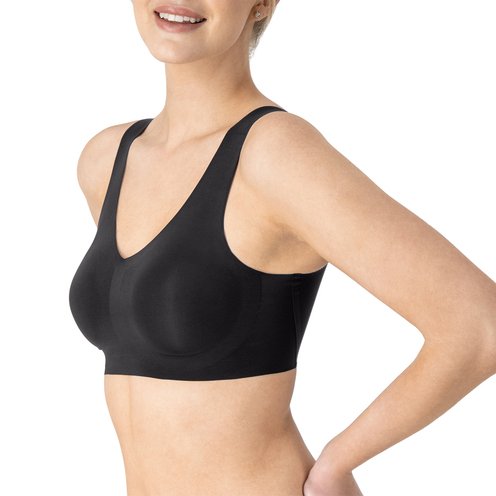 If you want a totally smooth look with comfortable support, look to Hanes® Invisible Embrace wireless pullover bralette. The name is poetic yet apt, describing how this wirefree style smooths and supports. It's designed with removable foam cups for flexible support and natural shaping. This wireless bra offers a ComfortFlex Fit® which means that it has 4-way stretch and moves effortlessly with you. And for even more comfort, this full-coverage bra uses Hanes® X-Temp™ technology that wicks away moisture to keep you cool, dry, and comfortable all day. The V front works under all kinds of fashion necklines and the pullover styling means no hooks or hardware to worry about. You'll love how this seamless, wireless bralette disappears under clingy clothes for the smooth, sleek look you want.