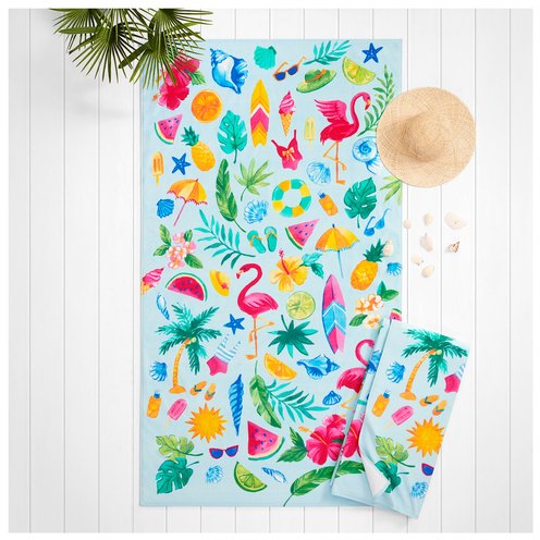 Brighten up your next beach day with generously sized printed beach towel. Vibrant colors and beautiful printed designs create visible interest. Crafted in rich cotton at 490 GSM, these towels are soft, cozy, and extra plush. Larger than traditional beach towels, they are generously oversized at 40" x 72".